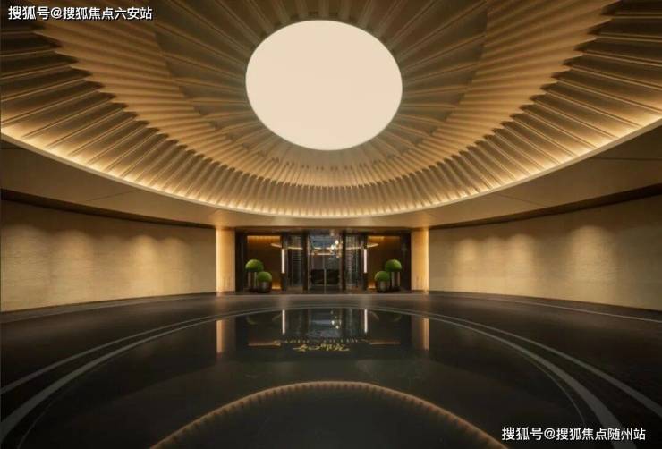 黑松迎宾,太行金石皮摹写山水肌理,开启松间画屏的宁静序章。斗拱、榫卯、拱门、丝织元素转译舒卷归堂的东方美学,穹顶之下,归家即享恢弘妙境。叠石、壑松、理水相映,约15米超尺叠瀑倾泻而下,以“银河叠水”奇观展现动态的《溪山行旅图》意境。下沉茶室静对流水,独拥“月映听泉”之幽。