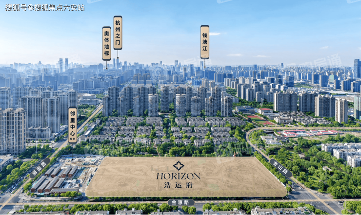 浩运府踞守博奥路与北塘河交汇处,这里自古便是萧山“风水官道”的起点。项目以东高西低之势,暗合紫气东来之象,北塘河活水环绕形成聚财格局,金惠路与区政府、科创中心串联成“财富三角”。 建筑排布遵循《易经》中“负阴抱阳”之理,高层与排屋错落有致,既藏风聚气,又引景入室。推开窗,北塘河波光粼粼,远眺可见区政府庄严轮廓,风水与城市肌理在此达成微妙平衡。