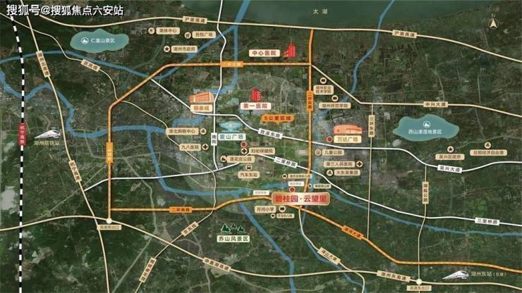 约4公里老城繁华区咫尺老城,4公里范围集合莲花庄,爱山广场,飞英公园,项王公园等城市人文精粹,近距离享受老城的精华和繁华。 四水交汇湖州老城南岸,于龙溪港、頔塘运河、钱山漾、长湖申航道四水交融之处,营造公园式岛居的生活意境,开启湖州人居的下一代坐标。