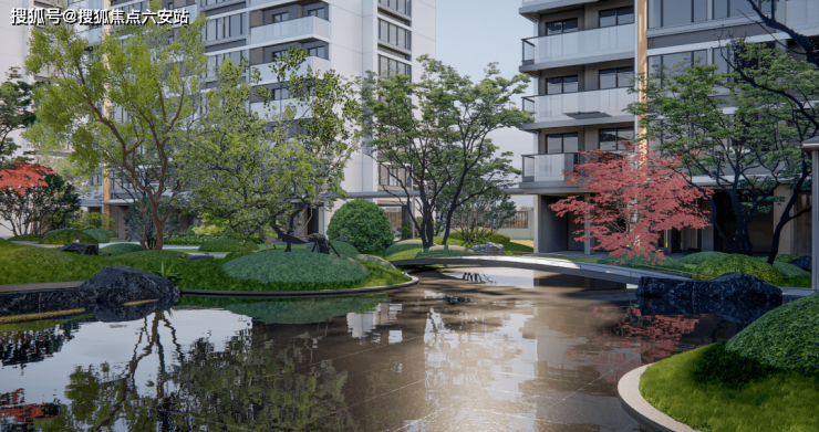 大围合式的建筑布局,谦逊地退位于自然,超70m楼间距 , 为自然留下更多的可能性;近万方的中心庭院,茂盛生长;湖畔度假花园,森林花园,童趣乐园,禅林闲庭等,一个个花园串联起整座园区的生活日常。