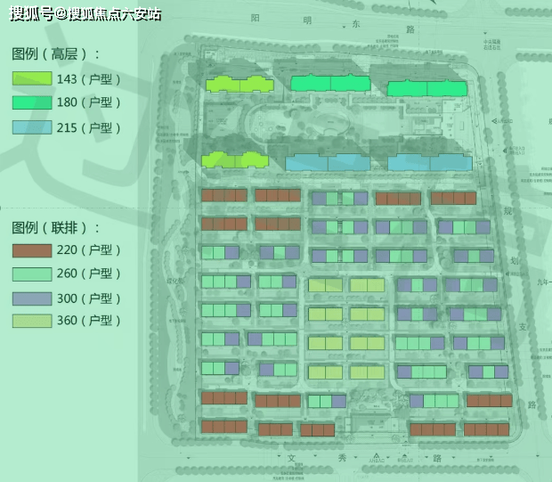 产品规划:166户联排院墅、296户小高层(13~14层)
