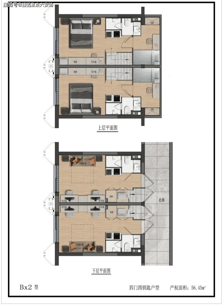四钥匙户型:建面56-57㎡,四门独立入户,可改造为6房,满足多场景投资需求
