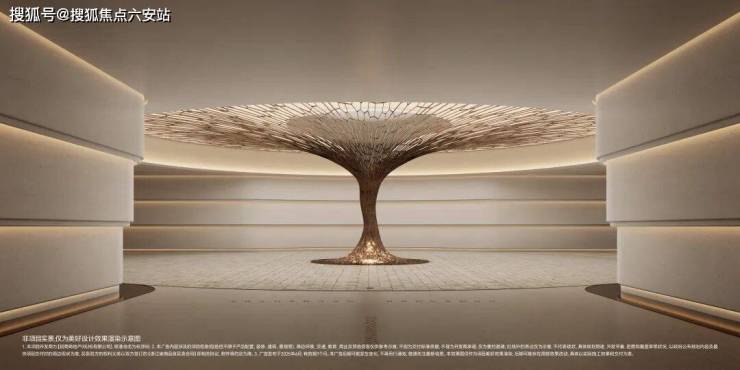 宾客甫至,三层挑空的前厅豁然展开。中央,一株金属锻造的黄金树雕塑破空生长,迸发盎然生机,宛如与社区共生共荣的巨木,枝影扶疏,蔚然成观。