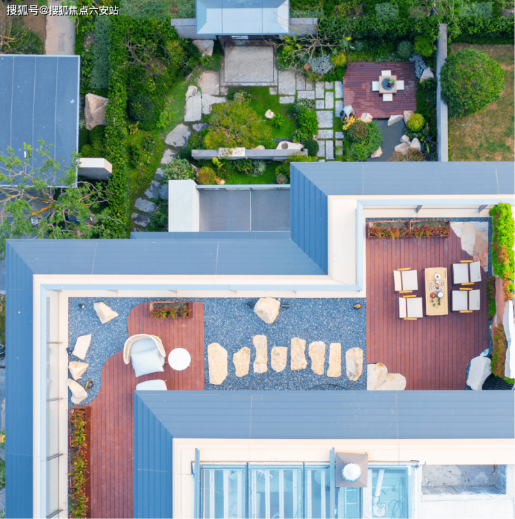 这个露台做了私梯,可以从北面的入户庭院直达,也是很方便。除了房间,多出来的空间,适合做星空花园,烧烤、影院、聚餐非常合适。