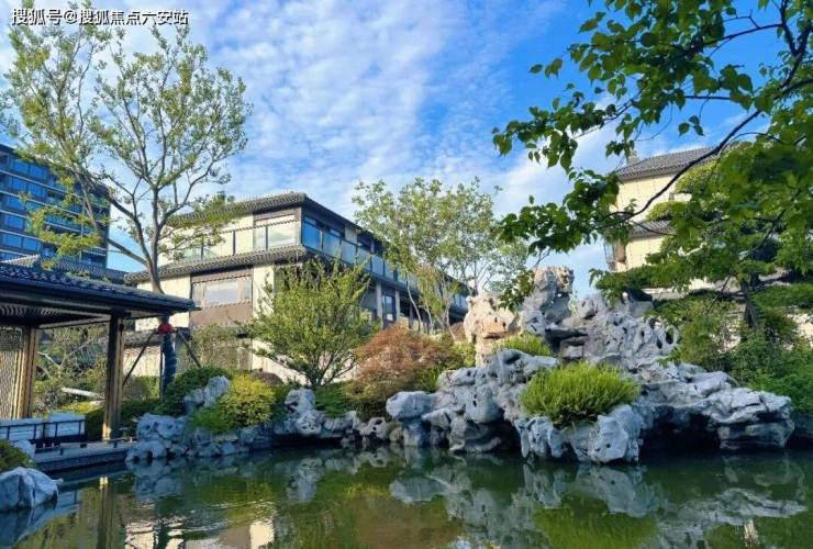 走进园区,金元宝形的水庭伴随树影花香,石桥廊亭映入眼帘,中央园林假山高立,跌水飞瀑,太湖石、锦鲤鱼、迎客松,所见之处皆是诗酒花茶般的浪漫,好似一幅灵动的江南园林画卷,让业主感受“五境归家”府邸礼序的尊崇礼仪。