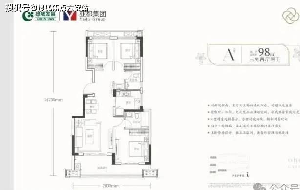 100方三房两卫,114方、125方四房两卫,一梯两户,高得房率