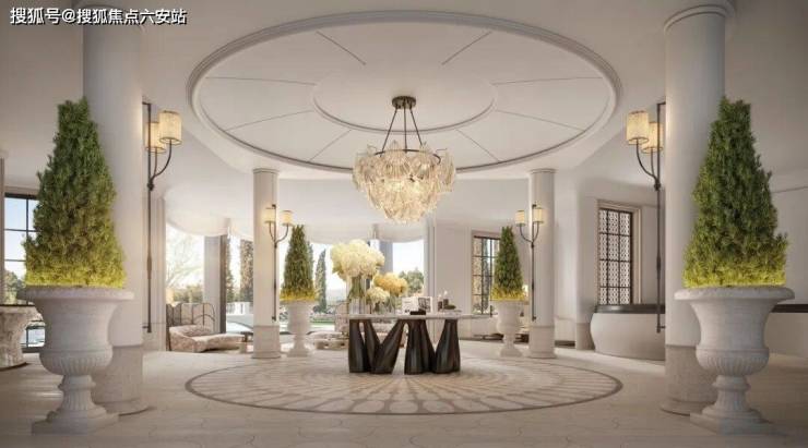 联排部分,绿城以巴黎卢浮宫玻璃金字塔为灵感,将金属雕花、石材立面与弧形玻璃幕墙进行解构重组,既保留了法式建筑的轴线感与仪式感,又通过大窗墙比(约65%)与270度环幕视野,将自然光影引入室内空间。