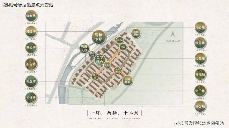 萃取《千里江山图》十二境,不同地势与原景,以主题花木与生活意趣打造不同情境的风雅十二坊,以游赏环步道与十字景观双轴串联,营造闲庭信步的恒美日常。