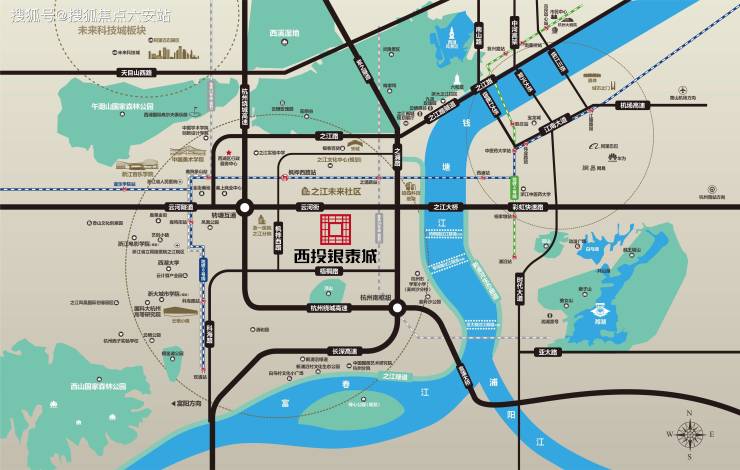 从拥江发展1.0到全域拥江3.0,之江新城傲立时代潮尖之上,于约458㎡公里三江汇宏伟版图之上,坐落滨江、富阳、西湖、萧山四区核芯,承袭高级战略规划,擘画超前城市生活蓝图!在这里,交通、文化、生态、商业4大枢纽全面赋能,西投银泰城雄踞中芯资源带之上,未来价值不言而喻。