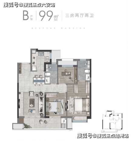 高层-B户型99m²】3室2厅2卫