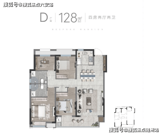 小高层-D户型128m²】4室2厅2卫