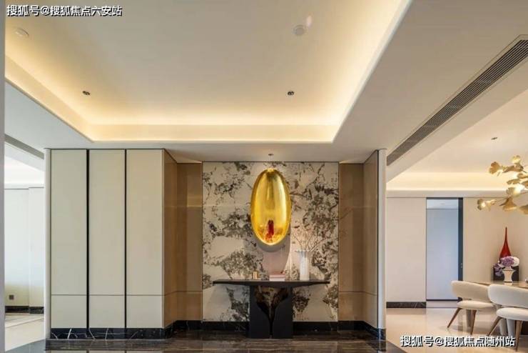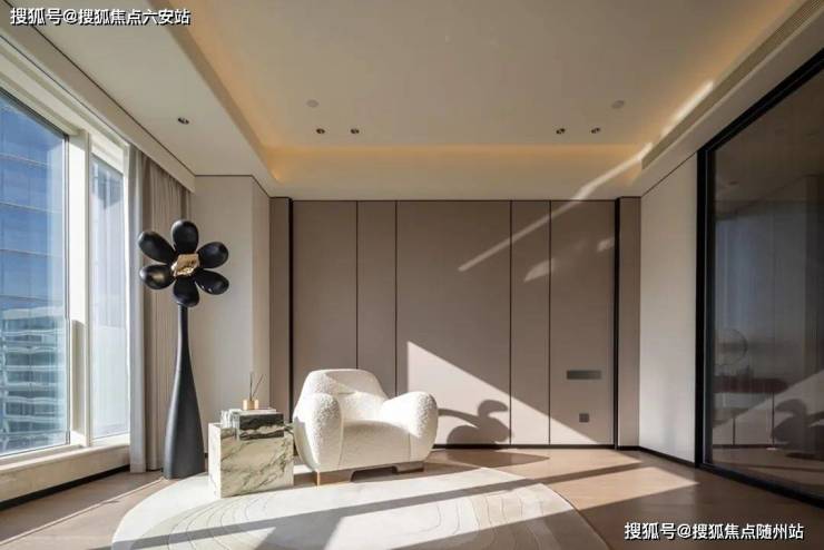 如同钱塘江的金色波光,温柔地流淌在室内,带来温润的质感,灵动的弧线在这里交织,它们以艺术的姿态,营造出一种柔和而宁静的境界。背景墙用雪山银狐奢石及弧面设计手法、对比落日的余晖,模糊了空间与外界的界限,落地窗给予空间最大限度的光线互相交融,打造风雅自在的生活情调。杭州江河汇◆大平层◆滨江揽潮誉道🔻售楼热线:☎ 400 832 8823「售楼处」☎〢网上售楼中心〢🔻