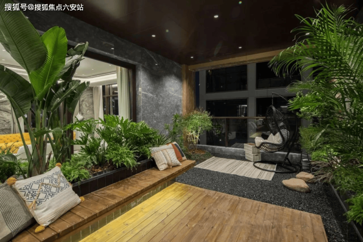 更别说更早的阳光海岸、银杏汇、水晶澜轩了,大多只有普通阳台。约40㎡的露台,尺度几乎和下叠院子相近。