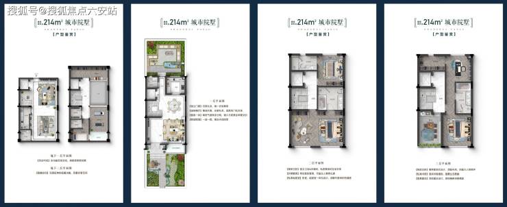 排屋297㎡:边套五房三厅,南北双庭院达150㎡,石材干挂外立面,预埋双向通风井防潮。
