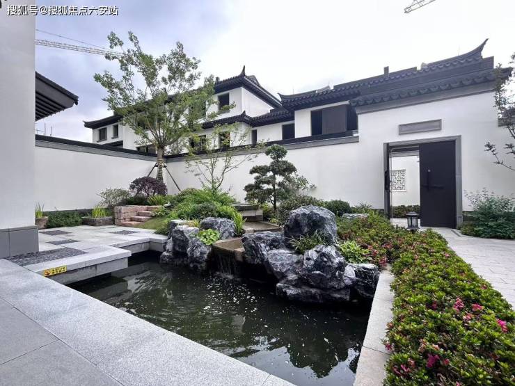 新唐风建筑美学:融合香山帮非遗技艺的新唐风作品,灰瓦白墙藏唐风底蕴,园林以 "一轴两带三庭院" 的景观布局,打造樱花栈道、中央水景、林荫步道等多元场景。