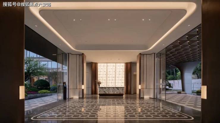 归家仪式:从社区大门到迎宾水院,通过精细拉槽石材、仿铜不锈钢、伯爵蓝釉面陶板等材质,打造“一步一景”的归家动线,强化尊贵感与仪式感。