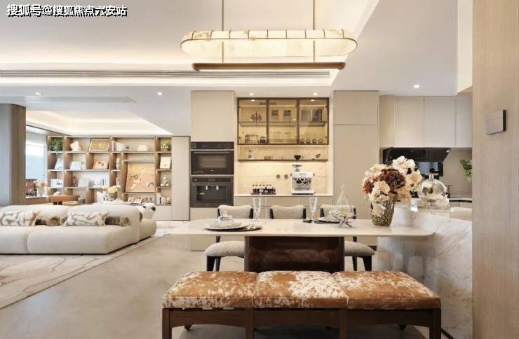 客厅背景墙的吊柜与储物格,展示柜的灯带与玻璃门,为收藏的Labubu提供了最佳舞台。这种“情绪收纳”的逻辑,让每一件物品都找到归属,也让生活回归纯粹。