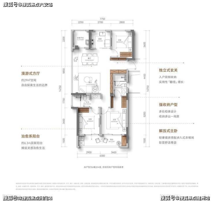 简单来说,这款户型拥有独立入户玄关、客餐厅+封包阳台、南向主卧套房+次卧……不仅功能性极强,且灵活可变,从容应对诸如三口之家到二孩家庭等未来家庭结构的变化。