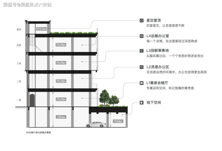独立式“4+1”墅式建筑结构,独享三重入户空间,独立电梯厅、旗舰展厅,打造总部企业办公新体验
