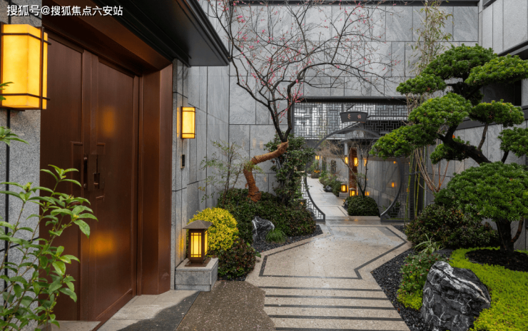 天朗气清时,水墨色与美国白金石的金绿辉映,交织出一种奢华但又深邃的沉静感。保证绝对的隐私性和生活品味。台阶、格栏、水系、亭台、树柏,层层递进,涵雲軒在追求美学的同时,做出了真正意义上的“隐奢”入口。外界无法一眼窥尽全貌,更添高门大户之神秘感。