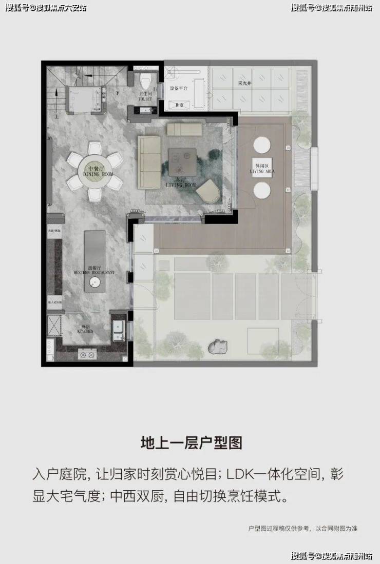 乐活层: 家庭厅、书房、次卧、阳光露台/庭院。