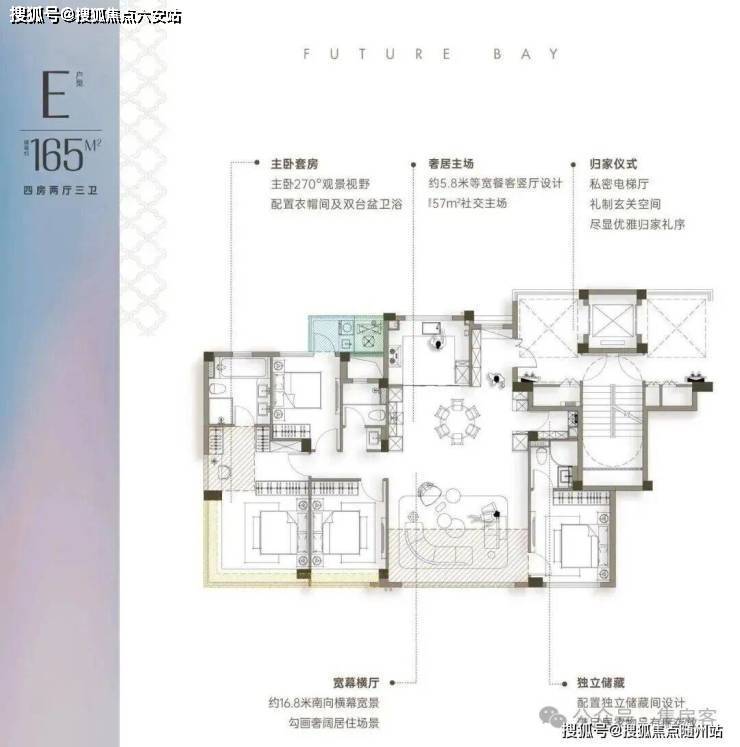 约165方户型,16.85米超大南向开间,超过市场所有同面积段产品;标配储藏间。