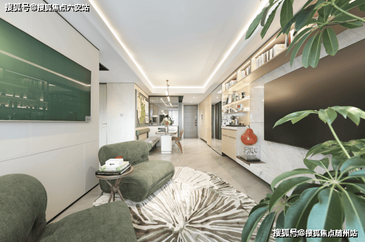 客厅背景墙的吊柜与储物格,展示柜的灯带与玻璃门,为收藏的Labubu提供了最佳舞台。这种“情绪收纳”的逻辑,让每一件物品都找到归属,也让生活回归纯粹。