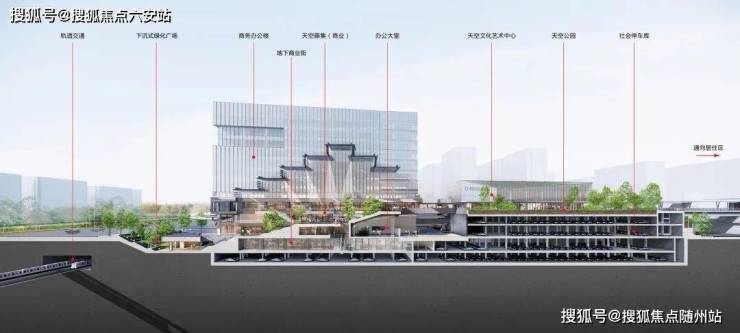 项目以立体生态绿轴为核心,地铁站、商业、办公、文化艺术中心、社会立体停车库、居住区等复合功能业态依次展开,并在各竖向标高设置空间节点连接周边地块及城市空间,打造多层次的花园社区,创造多元社区应用场景,提升街区活力,带动整个社区发展,实现“商业价值”和“人本追求”的共赢。