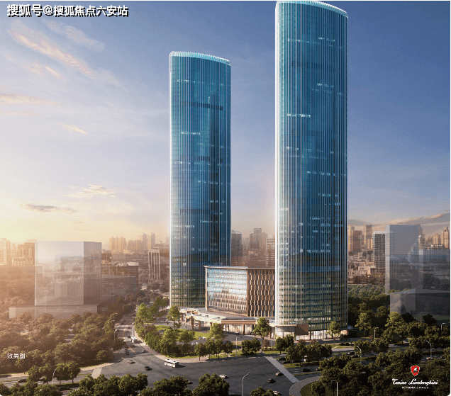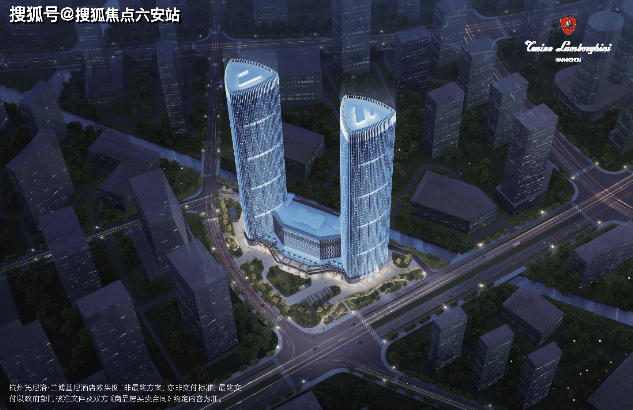 规划体量:总占地面积约2万㎡(约30亩),总建筑面积约30-31万㎡,由2栋250米(59层)双子塔及12层裙楼组成,其中T1塔楼为5A甲级写字楼,T2塔楼为兰博基尼行政公寓,裙楼引入杭州第二家托尼洛·兰博基尼Veneno酒店