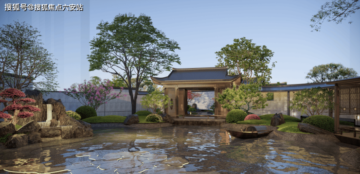 园林景观:项目内部精心规划了禅境中式园林,绿化率高,居住环境舒适。