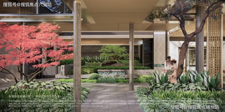 从约40米宽华盖门庭、酒店式落客区,到下沉水院摩卡生活剧场,再至宅间花园,以层层递进的空间序列营造归家仪式感。