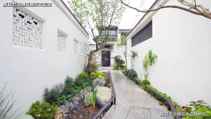 进入项目,归家动线两侧,白墙黛瓦、小桥流水、曲径通幽、芭蕉疏影相间,以两排为一组,围合成二十四条巷道,还原经典的江南坊巷。