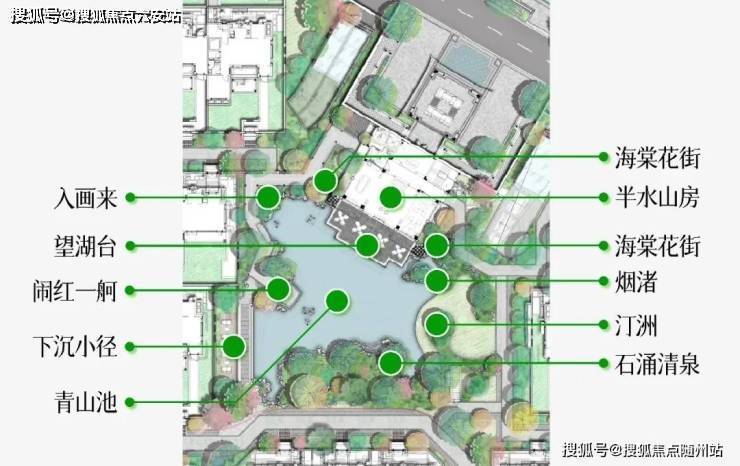 项目的园林,借鉴了苏州拙政园、东京旧芝离宫等的造园灵感,并糅合九溪烟树、西溪湿地等,形成「一溪两园三十景」把韵味悠长的诗境,在项目中再现。