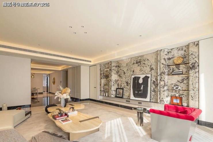 玄关处,整面渐变曲面艺术玻璃,映射若隐若现的江景;客厅中,钱塘江的柔美曲线,融入弧形吊顶与奢石拼花;19米的超大面宽,以270°环绕视野尽揽钱塘江景,让江河倒影和城市天际线在家中交汇。这是建筑与自然的对话,更是生活与艺术的融合。