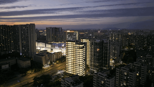 社群空间巧妙布局,将活力四溢的底层商业与优雅宁静的上层住宅有机融合。这几座宛如云中楼阁般的建筑,在开放而复合的业态映衬下,不仅展现出晶莹剔透的现代美感,更散发出一种温馨的生活气息。