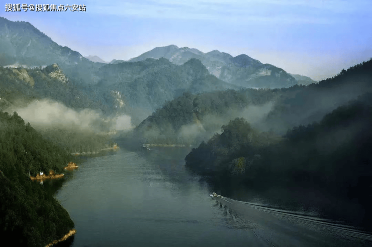 三面被绵延群山环抱,对望翠樾千重。一路往山谷深处徐行,北面至尽头处豁然开朗,竟是一汪8000多㎡的潋滟碧湖,恍若桃源之境。