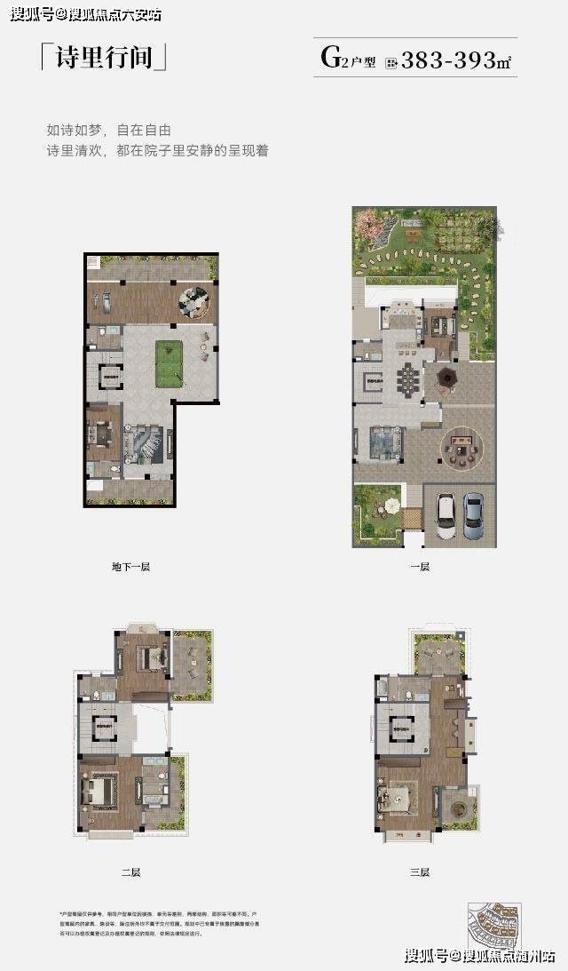 建面383–394㎡,英伦风格,南北双花园+独立车库;
