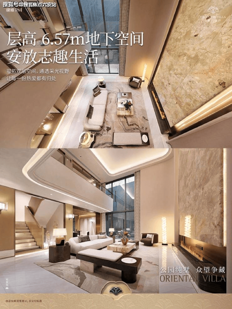 下叠与排屋地下室层高突破传统限制,6.57米挑高空间可灵活改造为影音室、藏书阁或健身区,搭配“夹层庭院”设计,实现地下室采光与功能性的双重升级。