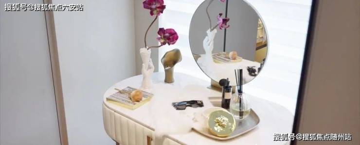 主卧则整整有(建筑面积约)50㎡,窗边一几二椅,看三山四季入画。卫浴用的是高仪,新加坡金沙酒店和阿布扎比皇宫的御用。梳妆台也有惊喜,面对自然采光,女孩子化妆也会更漂亮。