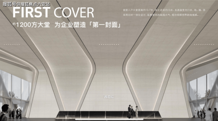 宁波中心大厦首层大堂层高约13.7米,大堂南北进深约13米,东西面宽约11米,大堂总面积约1200平方米,地墙顶设计均采用石材一体化,整体空间旷达、视野开阔,成为企业的身份名片。