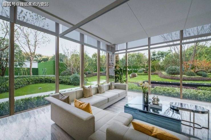 约9米挑高大堂,以国际化视野、星级酒店标准营造屋顶花园、露台、私密庭院,庭院面积约1000㎡,屋顶花园约550㎡,露台约50㎡,提供灵感空间。