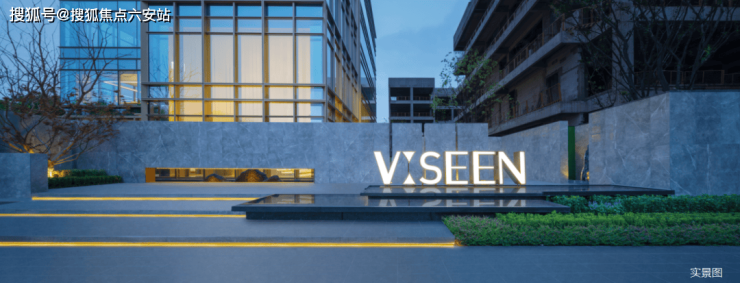 品牌名称VISEEN,以艺术雕塑的方式点缀于错落式水面上,与另一侧的红枫,共同形成一个开放的,且具有仪式感和艺术性的迎宾空间。