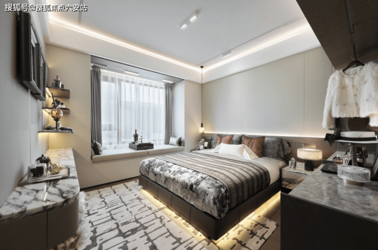 主卧套房格局尽显尊崇,为业主打造了一个静谧奢享的私属天地。观景飘窗让业主在闲暇时光可以坐在窗前,品一杯香茗,读一本好书,欣赏窗外的美景;步入式衣帽间(预留)为业主提供了充足的衣物收纳空间,让衣物整齐有序,彰显品质生活;独立卫浴系统则保证了业主的私密性和舒适性,让每一次沐浴都成为一场身心的享受。