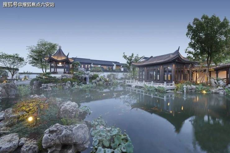 以江南水乡园林为蓝本,中式宅院与园林融为一体,集山水、街巷、庭院、礼制、园林五大意境于一园之内,形成宅园合一的东方理想居住环境。