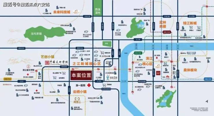 之江转塘及紧邻的富阳银湖区块,杭州绕城西线转塘入口处。北面临中国美院,浙江音乐学院等艺术院校,东西南均为之江核心的高端住宅聚集区。该板块是杭州重点开发的国家级旅游区,在之江不仅有玉带环腰之势的钱塘江,更有风景如画的西湖风景区相伴。
