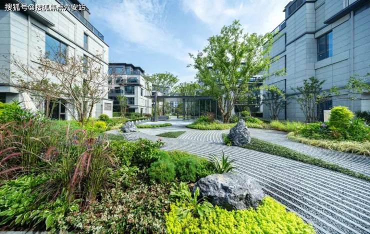 构成富有健康、静谧关怀的艺术之境;步入其中,水浪纹艺术小品、叠水台阶、镜面水景搭配户外休憩节点渐次铺陈,展现隐逸江河汇的惬意,身与心的从容。