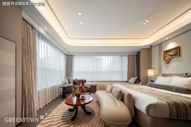 铝板与大面玻璃的结合不仅符合现代审美,还具备良好的耐候性和实用性,能够经受时间考验。项目在材质选择上极为考究,如发光石材背景墙、瑰丽酒店同款壁灯等细节,体现绿城对精工品质的坚持。