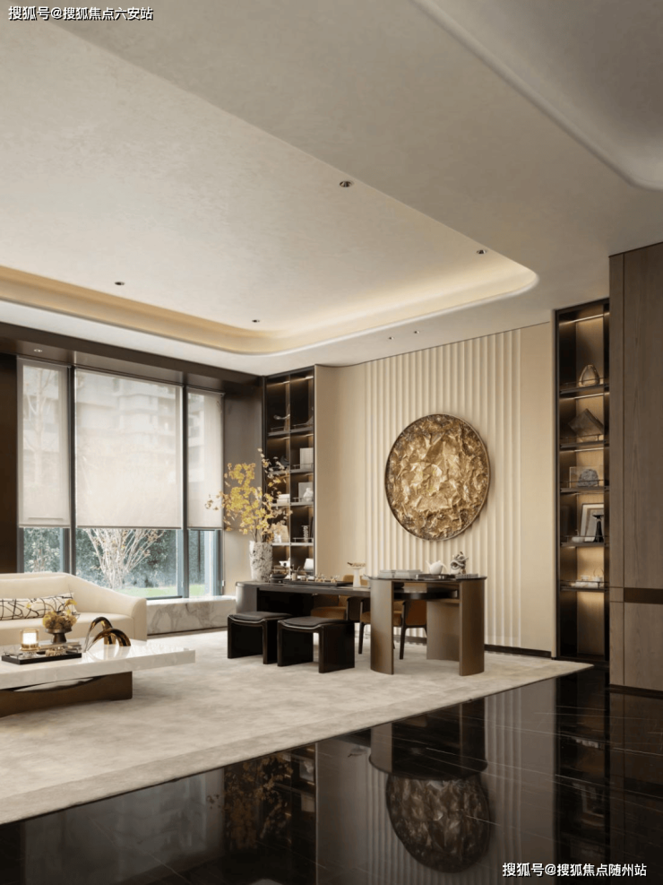 项目主打300-600㎡商业大平层,创新采用“化整为零”设计,将阳台纳入室内,形成一体化的双客厅概念。部分户型采用四至七套房布局,如480㎡户型设七房三厅七卫,三套间朝南。一层架空层达4.79米,其他楼层高3.4米,搭配270°落地窗,引景入室。空间弹性支持两套合并定制,满足多代同堂或私人会所需求。