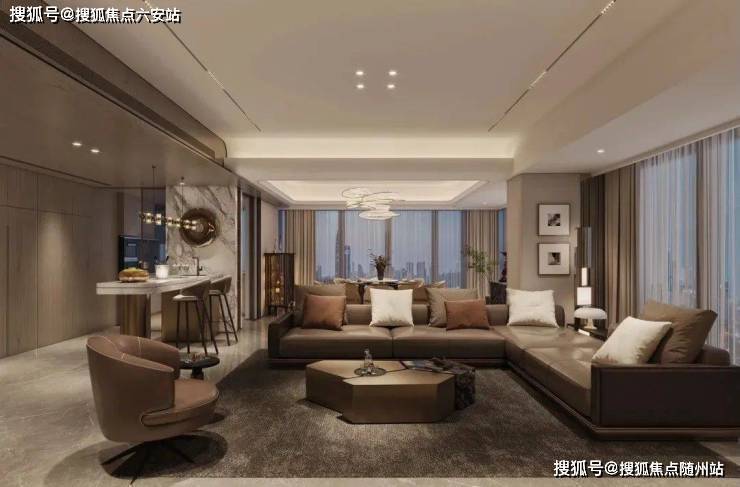 项目承袭蓝城“精致烟火气”营造理念,在细节处展现高端住宅的营造功底。外立面采用玻璃幕墙+金属线条+石材基座,塑造现代简约美学;约305方大平层配置四开间朝南、L型全景阳台等设计,确保270°视野通透感。
