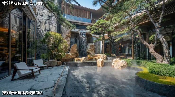 有恍若湖泊的水景,你可以坐在这里欣赏红枫的四季变化;有用叠石溪涧、姬岩垂草、羽毛枫等等交织而成的庭院,仿佛就是一个迷你版的九溪十八涧;还有用太行金整石铺排而出的山石庭院,你可以随意在「山间」落座放空……